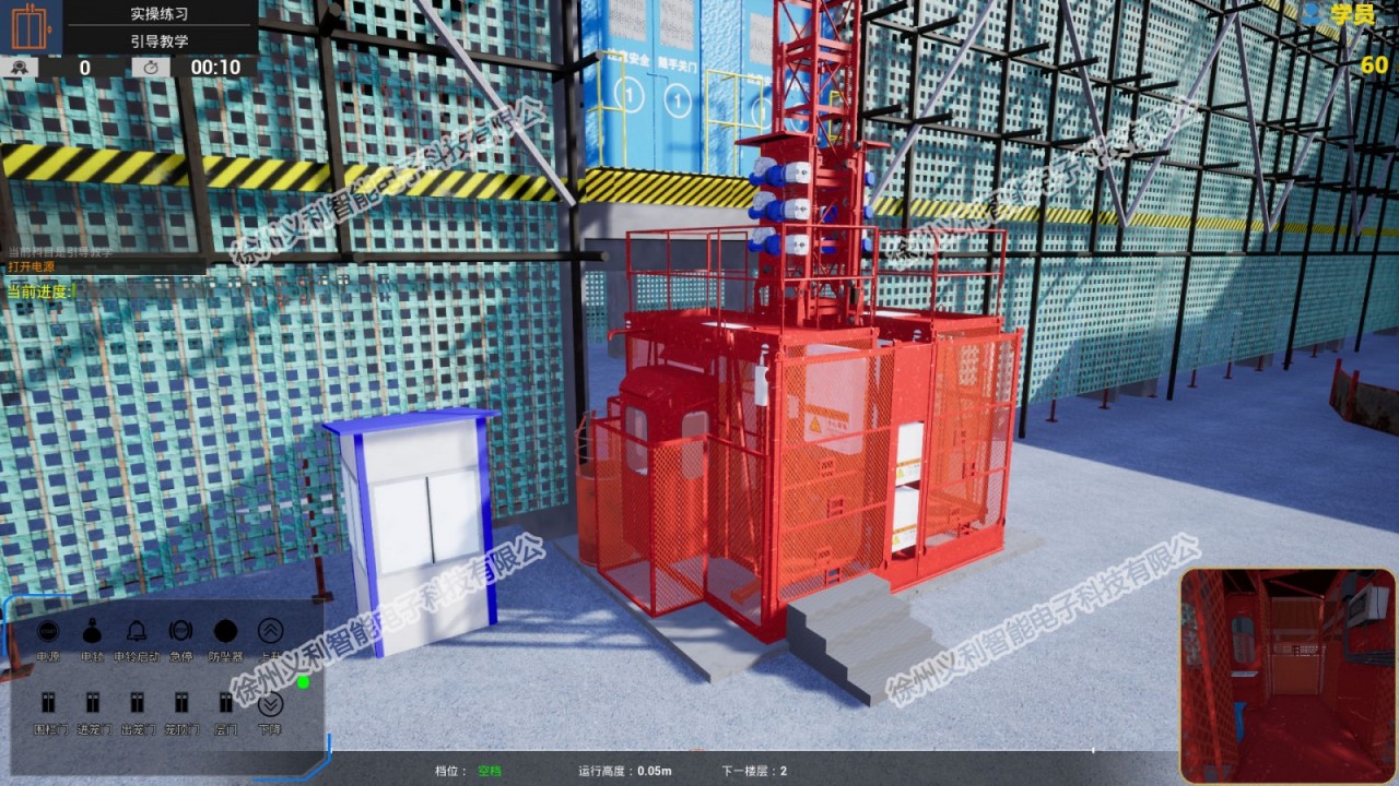 该模块符合培训大纲标准的规范要求,切合实际的安排对施工升降机操作的学习。主要培训学员在逼真的建筑施工环境中,练习施工升降机的操作。
